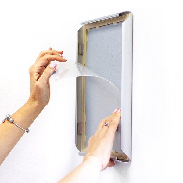 Puikus sidabro spalvos snap rėmas A4 plakatų dydžiams. Scritto® Snap Frame turi 25 mm pločio profilį ir gali būti naudojamas vertikaliai ar horizontaliai. Apatinis profilis pagamintas iš kieto plastiko. Dėka snap rėmo konstrukcijos, galite lengvai keisti savo plakatą, net nenuimdami rėmo nuo sienos. Puikiai tinka informacijai teikti ar reklamuoti viešbučių sektoriuje, prekyboje ir viešose erdvėse, arba naudoti kaip sienų meną namų dekore.