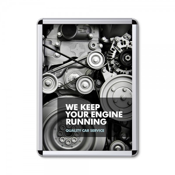 Užtikrinkite, kad jūsų reklaminis plakatas būtų matomas su elegantišku ir patvariu 32 mm Snap Frame rėmu. Stipraus profilio snap frame, puikiai tinka didesniems plakatų dydžiams. Dėka snap frame konstrukcijos, galite lengvai keisti savo plakatą, nenuimdami rėmo nuo sienos. Pasirinkite tarp suapvalintų arba kampuotų kampų. Puikiai tinka naudoti viešbučių sektoriuje, mokyklose ar viešose vietose.