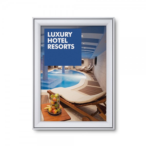 Reklamuokite savo produktus, prekės ženklą ar tiesiog teikite informaciją su ekskluzyviu Compasso® aliuminio Snap Frame. Unikalus aliuminio rėmo dizainas su aukštos kokybės dvigubu rėmo įspūdžiu ir 37 mm pločio profiliu. Snap frame konstrukcija leidžia labai lengvai ir greitai keisti reklaminį plakatą, nereikia nuimti rėmo nuo sienos. Antiglare folija užtikrina optimalų plakato apsaugą. Puikiai tinka teikti informaciją ar reklamuoti viešbučių sektoriuje, prekyboje ir viešose erdvėse ar naudoti kaip sienų meną namų dekore.