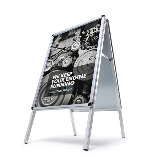 Reklamuokite savo prekės ženklą, pasiūlymus ar produkciją praeiviams su 32 mm A-Board Atspariu orams. Kaip jau nurodo pavadinimas, šis A-stendas yra visiškai sandarintas su plakato krepšiu ir todėl atsparus oro sąlygoms. Prieinamas dydžiais A1, A2, 50 x 70 cm ir 70 x 100 cm. Puikus A-stendas lauko naudojimui. Idealu lauko reklamai prekybos centruose, supermarketuose, restoranuose ar lauko renginiuose.