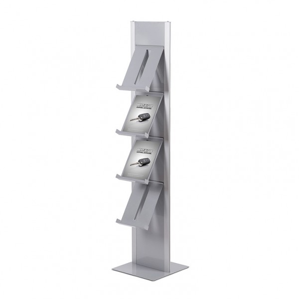 Brošiūrų stovas Totem sidabrinis su plieninėmis brošiūrų lentynomis