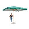 Šio skėčio 3 x 3 metro dydis užtikrina pakankamą apsaugą, o rėmas pagamintas iš aukštos kokybės Kotó medžio polių ir šoninių dalių, bei alksnio medžio centrinių dalių ir viršutinio konuso. 60 mm storas polius garantuoja tvirtą palaikymą ir stabilumą, derindamas eleganciją ir ilgaamžiškumą jūsų lauko aplinkai, ar tai būtų terasos, sodai ar renginiai.