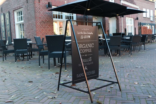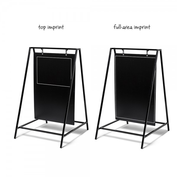 Su tik 15 mm rėmu, Kreidinė lentelė su A-šablonu yra minimalistinio dizaino A-šablonas rinkoje. Modernus ir industrijinis išvaizda dėl juodos spalvos. Tai puiki ir moderni sprendimas restoranams, kavinėms, parduotuvėms, biurams ir kt.