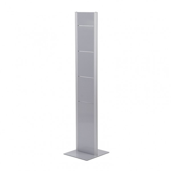 Leiskite klientams ar lankytojams pasiimti brošiūrą iš jūsų Brošiūrų laikiklio Totem. Stabilus laisvai stovintis totemas su brošiūrų lentynomis, kurį lengva sumontuoti. Organizuokite lentynas ir kišenes pagal savo poreikius ir pasirinkite tarp sidabro ar juodos spalvos. Puikiai tinka naudoti laukimo patalpose viešuosiuose erdvėse, viešbučių sektoriuje ar parodose bei renginiuose.