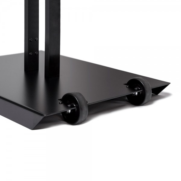 Stovas turi ratukus, leidžiančius lengvai jį judinti. Tiesiog pajudinkite stovą lauke ir jis bus paruoštas naudojimui. Tai puikus sprendimas lauko reklamai, siūlantis aukštos kokybės dizainą prie prieinamos kainos.