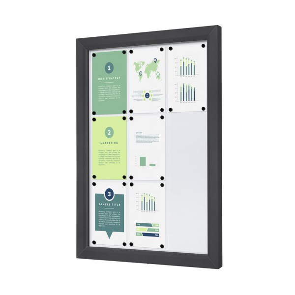 Puiki vitrina, skirta jūsų plakatų reklamai pristatyti lauke. Lauko užrakinama vitrina yra lauko vitrina, turinti didelį atsparumą ir 25 mm vidinį gylį. Tinka naudoti lauke, su IP56 orų sąlygoms atspariu sertifikatu ir ugnies apsaugos sertifikatu B1 DIN4102. Rašoma ir magnetinė. Tinka naudoti ant sienos, tvoros arba laisvai stovinčio stulpo. Prieinama įvairių dydžių. Dydžiai, kurie telpa daugiau nei 12 A4 lapų, yra aprūpinti dujų spyruoklėmis. Puiki užrakinama vitrina plakatams, reklamoms ar pastaboms lauke.