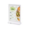 Paimkite savo stalo viršų ir skaitmeninę reklamą ant prekystalio į kitą lygį su apšviestu T Stand LED. Su aukštos kokybės apšvietimu, įkraunamu dizainu ir paprastu plakato keitimu, šis stovas yra galingas ekranas, užtikrinantis, kad pritrauksite dėmesį. Jūsų žinutė vis tiek lieka ryški ir matoma dėka LED apšvietimo. T Stand LED turi kompaktišką, lygų dizainą su rėmu, kuris yra vos 12,5 mm storio. Tai universalus apšviestas ekranas bet kuriai reklamai ir puikus sprendimas stalo viršutinėms ir prekystalio reklamoms. Nesvarbu, ar norite pritraukti dėmesį baro, viešbučio, parduotuvės prekystalio, renginio ar parodos metu. T Stand LED apšvietimas suteikia aiškų, ryškų ekraną, kuris tarnauja apie 8–10 valandų iš vienos įkrovos, todėl jis yra idealus visą dieną trunkantiems renginiams ir ilgiems pristatymams.