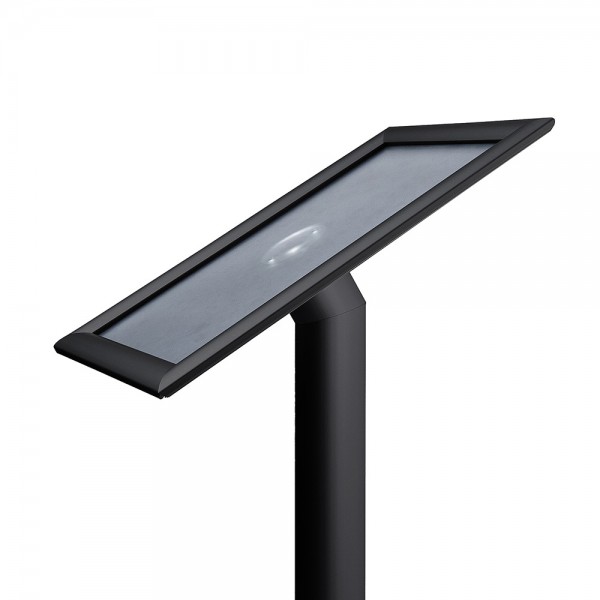 Pristatykite savo reklaminį pranešimą ar meniu šioje meniu stende. Snap rėmas yra prieinamas su apvaliais arba kampuotais kampais. Guminės kojelės suteikia papildomą stabilumą. Puikus produktas naudoti muziejuose ar parduotuvėse.