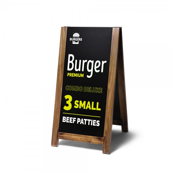 Pakvieskite klientus ir lankytojus aplankyti jus su šia rustikalią kreidinę lentelę. Aukštos kokybės dažytas medinis rėmas turi matinį laką apsaugai. Tinka naudoti tiek viduje, tiek lauke. Idealu restoranui ar parduotuvės įėjimui.