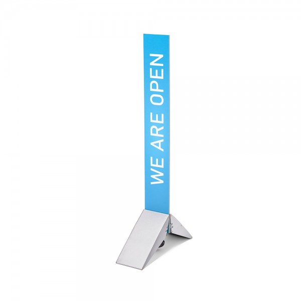 Pristatykite savo reklamą ant laisvai stovinčio panelių sprendimo. Panelių bazė iš aliuminio yra tinkama laikyti spausdintus reklaminius skydus. Tinka tiek vidaus, tiek lauko naudojimui ir skydams, turintiems storį nuo 3 iki 26 mm. Ideali parduotuvės ženklų lentelė, skirta rodyti jūsų pasiūlymus ir akcijas.