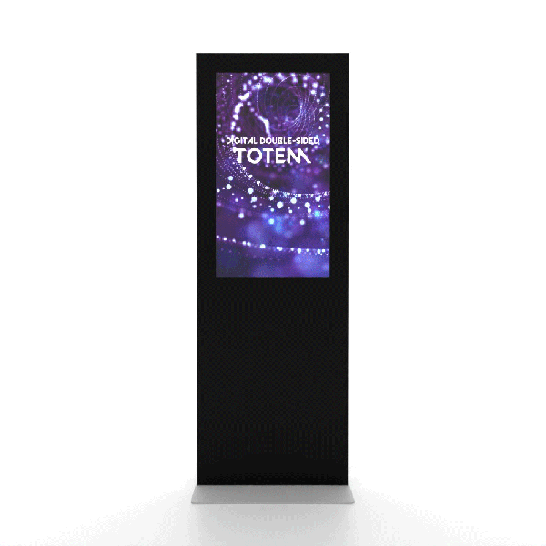 Užtikrinkite maksimalų reklamos žinutės matomumą su šiuo dvipusiu skaitmeniniu totemu. Atsparus aliuminio korpusas įrengtas su stiklu, kuris apsaugo nuo pažeidimų. Puikiai tinka parduotuvių centrams, parodomiesiems renginiams ir oro uostams, pavyzdžiui.