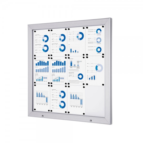 Ši užrakinama vitrina yra saugus sprendimas apsaugotam lauko naudojimui. Užrakinama vitrina yra aprūpinta trimis silikoninės gumos sistemomis. Dujų spyruoklės, esančios didesniuose dydžiuose (12 x A4, 15 x A4 ir 18 x A4), padeda lengvai atidaryti vitriną. Dujų spyruoklės įmontuotos, kad būtų palengvintas vitrinos sklandus ir lengvas atidarymas bei uždarymas. Tinkama vitrina sienai, tvorai ir laisvai stovinčiam stulpui. Ši vitrina derina saugumą su stiliumi, įskaitant tvirtą spyną ir pristatoma su dviem rakteliais, kad jūsų turinys būtų saugus. Dydis 4 x A4, 6 x A4 ir 9 x A4 turi 1 spyną ant vitrinos. Dydis 8 x A4, 12 x A4, 15 x A4 ir 18 x A4 turi 2 spynas ant vitrinos.