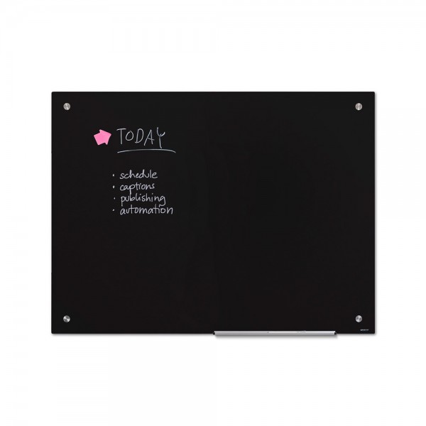 Pradėkite skleisti naujienas moderniu apdaru! Juoda stiklo lentyna parems visų pranešimų ir informacijos dalijimąsi moderniu ir minimalistiniu būdu. Rašoma aukštos kokybės stiklo lentyna suteikia daug galimybių, kaip dalintis pranešimais. Rašykite žinutes, ištrinkite ir valykite lentyną ir rašykite naujas. Juoda spalva užtikrina, kad ji tiks kiekvienam moderniam interjerui. Ar tai būtų biuras, namų biuras ar mokykla. Baltas markeris ir montavimo rinkinys įtraukti, tad jūs esate pasiruošę veikti! Juoda stiklo lentyna užtikrina, kad jūsų pranešimai ir informacija bus dėmesio centre!