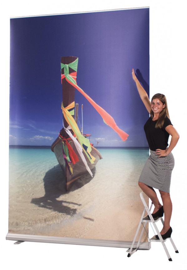 Roll-Banner Extreme yra platus kasetė su turiniu spauda, kurią lengva susukti ir supakuoti po naudojimo. Dėl 150 cm arba 200 cm pločio Roll-Banner Extreme puikiai tinka kaip galinė siena parodoms ir renginiams. Lengva surinkti, saugoti ar nešioti specialioje maišelyje su užtrauktuku per visą ilgį. Puikiai tinka naudoti parodose ir renginiuose.