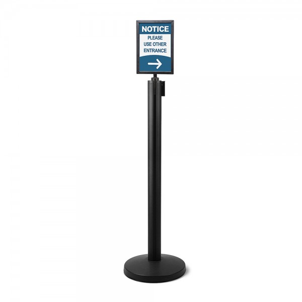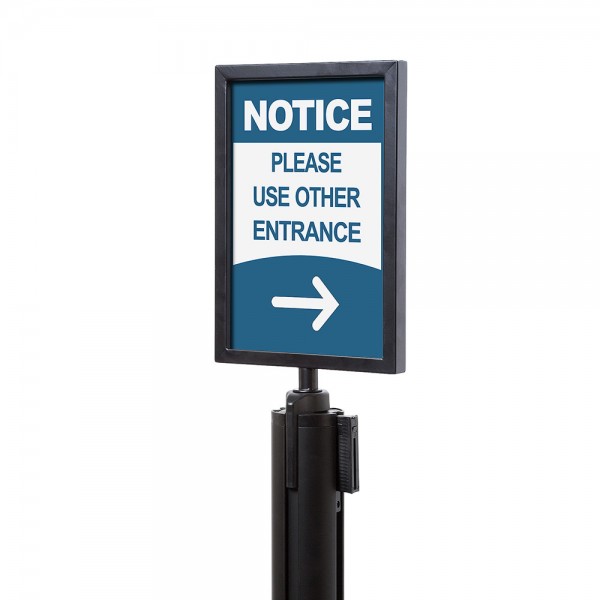 Patraukite dėmesį į savo barjerą su A4 formato plakato skiltimi viršuje. Puikus papildymas, skirtas valdyti klientų eilės srautą ir kryptį. Keiskite savo plakatą lengvai ir greitai, tiesiog įsistumkite savo A4 formato popierinį pranešimą. Valdykite eilės srautą ir kryptį. Priedas prie Barjero Fleksinės Juostos Stiebo. Idealu naudoti restoranuose, parduotuvėse ar viešuosiuose erdvėse.