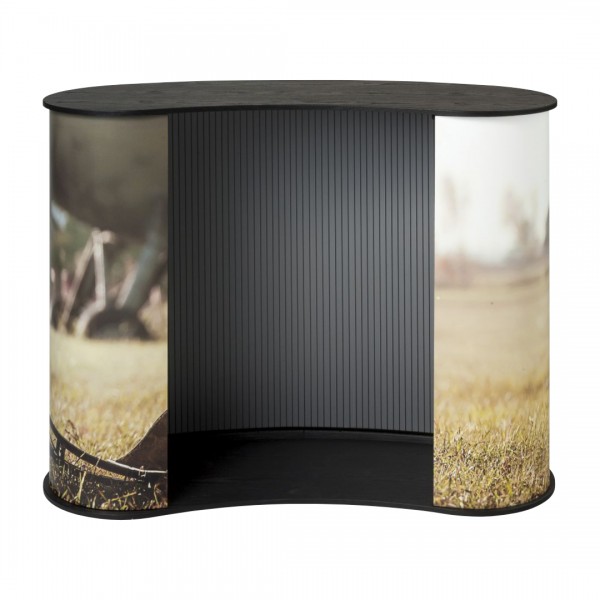 Counter Professional Original L siūlo pristatymo ir saugojimo erdvę, idealų stovą naudoti parodose ir renginiuose. Jo lenktas juodas stalo viršus užtikrina stabilumą ir turi kanalo struktūros plokštę bei kabliuko Velcro sistemą lengvam grafinio elemento pritvirtinimui. Supakuotas patogiose pervežimo maišuose, lengva transportuoti ir surinkti. Žinomas dėl savo stabilumo ir patogumo, jis turi papildomą saugojimo erdvę viduje ir pasirinktinį medinį lentyną. Stalas atspausdintas ant PVC nemokamo PET medžiagos, siūlantis aplinkai draugišką alternatyvą dažnai naudojamai PVC medžiagai. Tai populiari stovas, žinomas dėl savo stabilumo ir patogumo. Su dideliu stovo grafiniu plotu, tai populiari pasirinktis prekės ženklams ar produktams demonstruoti.