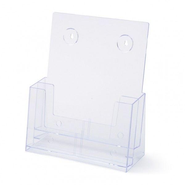 Rodykite savo lapelius ar skrajutes ant Scritto® Brošiūrų laikiklio ant stalo/sienos A4. Su kišenės gyliu 3,2 cm, bus pakankamai vietos rodyti savo A4 lapelius. Brošiūrų laikikliai yra tinkami tiek rodyti ant stalo ar darbo stalo, tiek ant sienos. Tinka A4 formato literatūrai. Pasirinkite laiptelių kiekį pagal savo reikmes. Puikus būdas rodyti lapelius ar skrajutes laukimo patalpose viešose vietose, registratūrose, svečių aptarnavimo sektoriuje ar parodose bei renginiuose.
