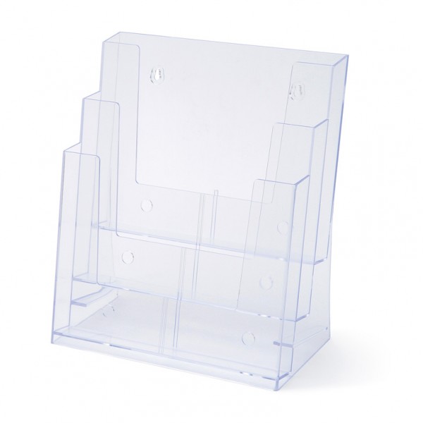 Rodykite savo lapelius ar skrajutes ant Scritto® Brošiūrų laikiklio ant stalo/sienos A4. Su kišenės gyliu 3,2 cm, bus pakankamai vietos rodyti savo A4 lapelius. Brošiūrų laikikliai tinkami tiek rodyti ant stalo ar darbo stalo, tiek ant sienos. Tinka A4 formato literatūrai. Pasirinkite laiptelių kiekį pagal savo reikmes. Puikus būdas rodyti lapelius ar skrajutes laukimo patalpose viešose vietose, registratūrose, svečių aptarnavimo sektoriuje ar renginiuose ir parodose.