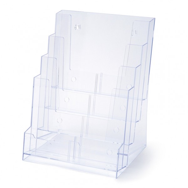 Rodykite savo lapelius ar skrajutes ant Scritto® Brošiūrų laikiklio ant stalo/sienos A4. Su kišenės gyliu 3,2 cm, bus pakankamai vietos rodyti savo A4 lapelius. Brošiūrų laikikliai tinka tiek rodyti ant stalo ar darbo stalo, tiek ant sienos. Tinka A4 formato literatūrai. Pasirinkite laiptelių kiekį pagal savo reikmes. Puikiai tinka rodyti lapelius ar skrajutes laukimo patalpose viešose erdvėse, registratūrose, viešbučių sektoriuje ar parodose bei renginiuose.