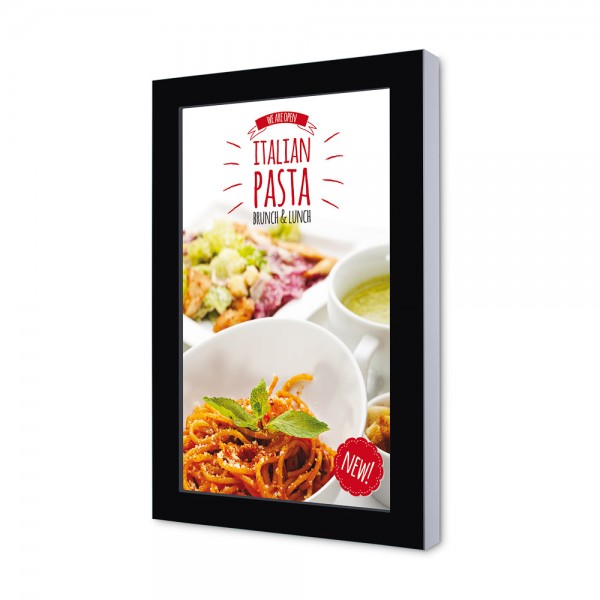 Informuokite savo lankytojus ir klientus šiuo sienos rėmu. Šis skaitmeninis produktas idealiai tinka jūsų dienos meniu ar savaitės akcijų reklamai, kad galėtumėte lengvai keisti savo žinutę. Lengva tvirtinti su varžtais. Tinka naudoti vertikaliai ar horizontaliai. Idealu naudoti mokyklose, viešbučiuose ar restoranuose.