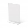 Pristatykite savo meniu, kainas ar darbo valandas klasikiniame T formos laikiklyje. Atsparus lankstinukų laikiklis T formos, pagamintas iš skaidraus akrilo. Informacija yra lengvai skaitoma klientui, o informacijos lapai lengvai ir greitai keičiami. Idealu rodyti ant stalų, prekių lentynų ar informacinių stalų. Puikiai tinka naudoti laukimo patalpose ar registratūrose viešuosiuose erdvėse, prekyboje ar svečių aptarnavimo sektoriuje.