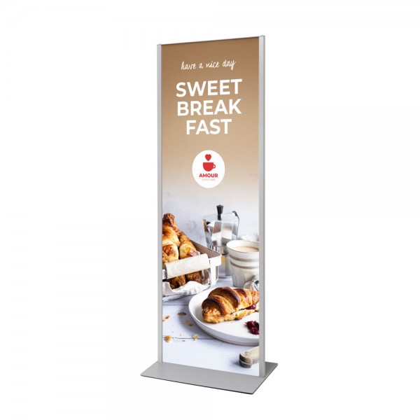Jūsų žinutė ir reklama bus apgaubtos elegantišku ir stilingu aliuminio rėmu. Su tik 25 mm storio, Totem Panel+ siūlo subtilų, tačiau įtaką darantį sprendimą. Prieinamas spalvomis stilingas juodas ir anodizuotas sidabras, kad lengvai derėtų prie jūsų norimo estetikos.