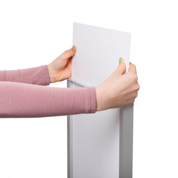 Sukurkite efektyvų informacijos pateikimo sistemą ir lengvai suteikite informaciją su Totem Panel+. Stilingas rėmas užtikrina, kad jūsų turinys būtų pagrindinis akcentas, pritraukiantį visą dėmesį, kurio jis vertas. Šis totemas tarnauja kaip puikus pagrindas daugeliui informacijos ar nurodymų, informacinių ar reklaminių tikslų viešuosiuose erdvėse, biuruose ir mokyklose, viešbučiuose, prekyboje ir daugiau! Padidinkite savo informacijos ir prekės ženklo matomumą ir palikite ilgalaikį įspūdį bet kokiame aplinkos kontekste!