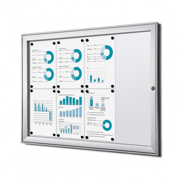 Pristatykite savo meniu naudodami Vidinį užrakinamą vitriną. Užrakinama vitrina su aukšto poveikio PS skaidriu priekiniu skydu, cilindro užraktu ir džiovintuvu magnetinį galinį skydą, tinkantį markeriams ir magnetams. Prieinama su sidabro arba juodu rėmu, įvairiais dydžiais ir gaisro atsparumo parinktimi. Tinkama naudoti viduje ir prižiūrimose lauke esančiose vietose. Puikiai tinka naudoti mokyklose, biuruose ar viešose erdvėse.
