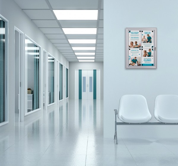 Pristatykite savo meniu naudodami Vidinę Užrakinamą Vitriną. Užrakinama vitrina su aukšto poveikio PS skaidriu priekiniu skydu, cilindro užraktu ir džiovintuvu magnetiniu galiniu skydu, tinkamu markeriams ir magnetams. Prieinama su sidabro arba juodu rėmu, įvairiais dydžiais ir su gaisro atsparumo parinktimi. Tinka naudoti vidaus patalpose ir prižiūrimose lauke esančiose vietose. Puikiai tinka naudoti mokyklose, biuruose ar viešose erdvėse.
