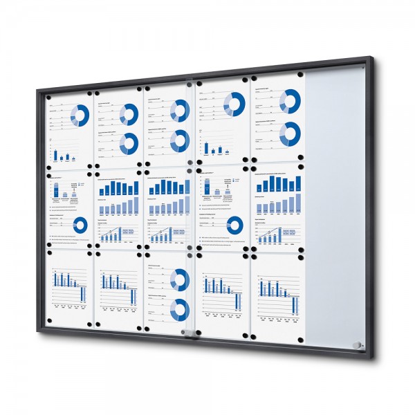 Vidinis užraktas. Vitrinos stumdomos durys Slim 18xA4 RAL 7016
