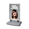 Pratraukite dėmesį praeinančių klientų į savo prekės ženklą, produktus ar pasiūlymus su šaligatvio ženklu Windtalker® City su plastikine baze. Idealu naudoti lauke, šis šaligatvio ženklas lengvai perkeliamas su integruotomis ratukais. Plastikinę bazę galima užpildyti vandeniu ar smėliu. Greitai ir lengvai pakeiskite savo plakatų reklamą naujai reklamai ar akcijoms. Prieinamas sidabro ar juodo spalvos. Puikiai tinka rodyti pasiūlymus ir akcijas prie įėjimo į prekybos centrus ar pabrėžti naujus produktus prie įėjimo į parduotuves.